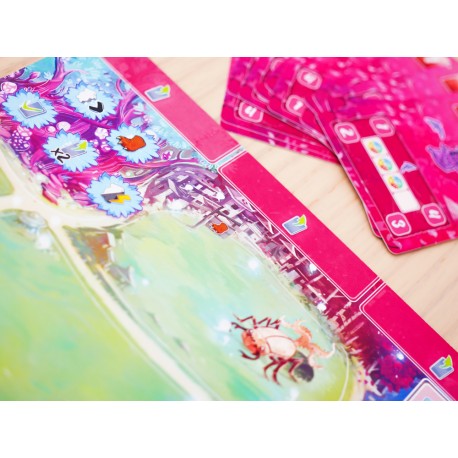 Aprovecha los recursos compartidos para construir tu ecosistema personal, superponiendo cartas de terreno para construir hábitats y colocando animales para obtener puntos de victoria al final del juego.