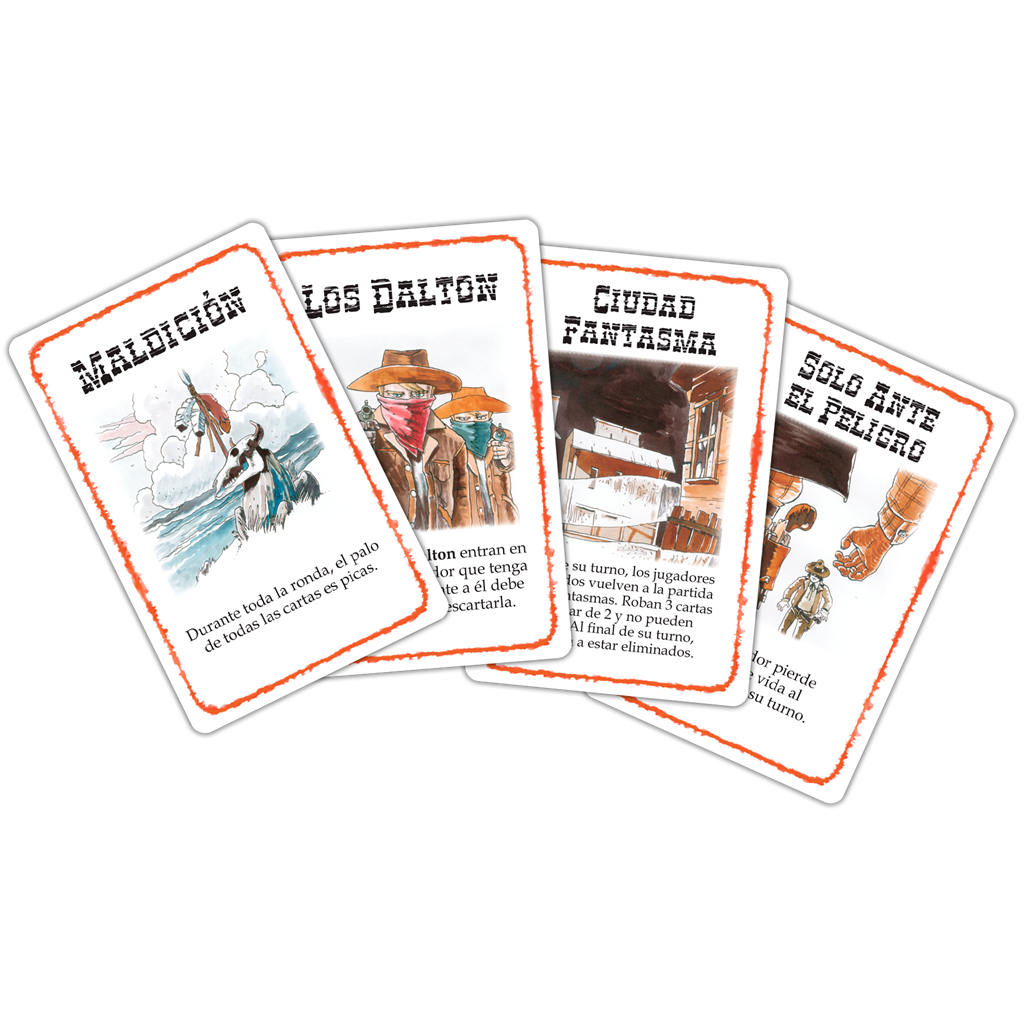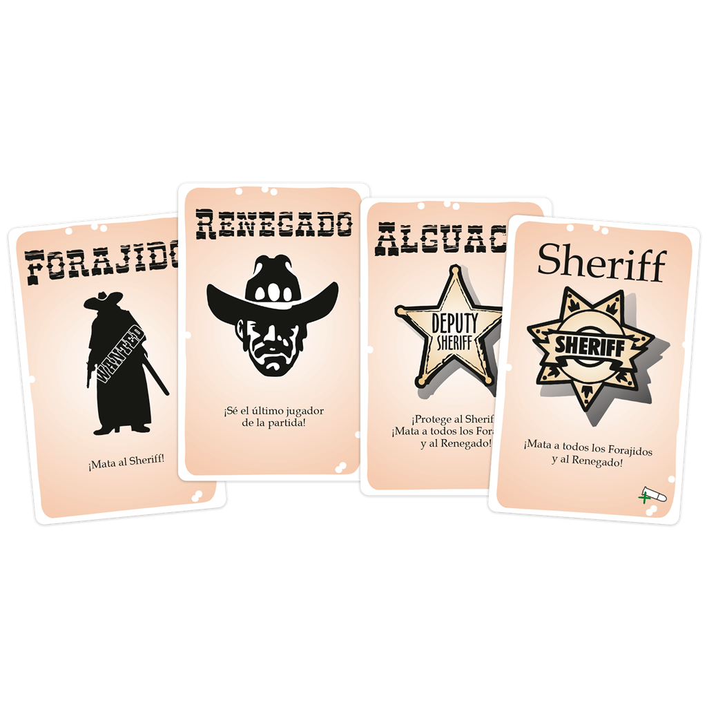 ¿Pero quiénes son los despiadados Forajidos que quieren coserle a tiros? ¡Para averiguarlo, tendrás que desenfundar (las cartas, claro)! Ahora el Sheriff ha decidido zanjar las cosas de una vez por todas, a su manera. Ha escrito un nombre en una sola bala. Ese nombre es… BANG!