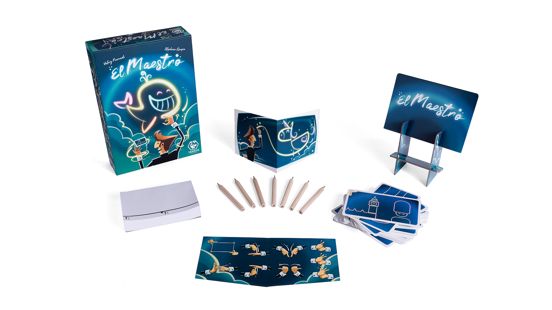 Atended a los gestos del maestro para plasmar en vuestros lienzos lo que está dibujando en el aire, e intentad adivinar dos de los elementos de la obra.