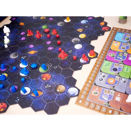 Facciones asimétricas con habilidades únicas, condiciones variables, un tablero modular y un sinfín de combinaciones hacen de Gaia Project un juego emocionante con rejugabilidad y diversión casi infinitas.