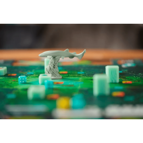 Bajo la brillante superficie, la luz del sol baila a través del agua mientras las algas se mecen con la marea. En las sombras, un escurridizo Pulpo se mueve con sigilo, sus ojos vigilantes escrutan y sus delicados tentáculos buscan comida. Deslizándose evita los puntiagudos erizos de mar con la esperanza de capturar a su presa. La supervivencia es primordial. De repente, un borrón gris azulado: el Tiburón-gato estriado aparece. Un depredador con un único objetivo: atacar al Pulpo.