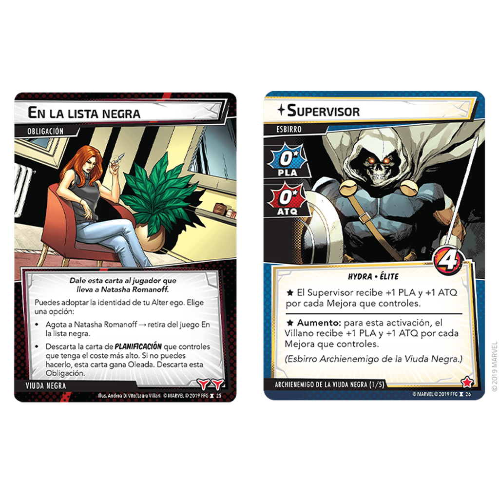 ¡El Pack de Héroe Viuda Negra incluye un mazo pregenerado para la Viuda Negra que utiliza el aspecto Justicia, el conjunto de Archienemigo del Supervisor y cartas adicionales para darte más opciones para la creación de mazos! ¡Con un perfil bien equilibrado y una carta de Planificación para cada ocasión, la Viuda Negra siempre está preparada para lo que pueda pasar!