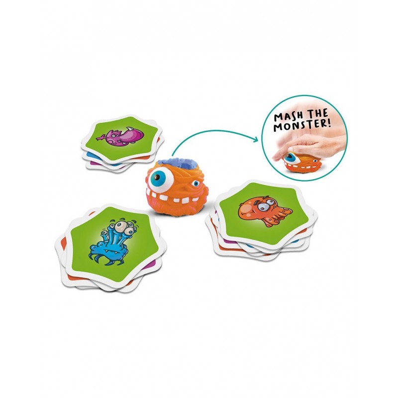 En este juego el objetivo es deshacerse de todas las cartas que se tengan en la mano. Para ello, por turnos los jugadores/as irán colocando la primera carta de su mano, sin mirarla, encima de uno de los montones de cartas destapadas de la mesa. En cuanto uno de jugadores/a detecte 3 cartas con el mismo monstruo, el mismo color de fondo o el mismo color de monstruo, debe aplastar la figura de monstruo del centro, y así uno de los montones de cartas pasará a un/a oponente