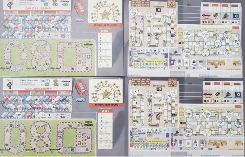 Motor City tiene un modo en solitario en el que intentas superar tu propia puntuación contra un auditor que dibuja dados y bloquea áreas de tu hoja. Su dificultad puede ajustarse fácilmente cambiando los colores de los dados durante la configuración, sin reglas añadidas.