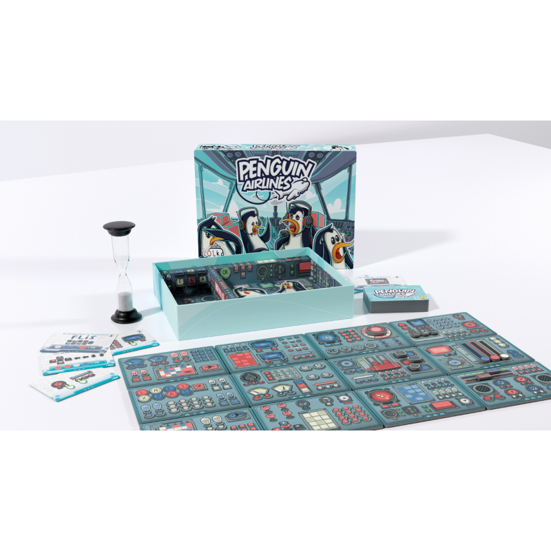 Un divertido Party Game para jugar por equipos, de 2-8 jugadores, 20-30 minutos de duración. En Penguin Airlines destaca una mecánica de agilidad visual y comunicación en combinación con la inquietante presión del tiempo.