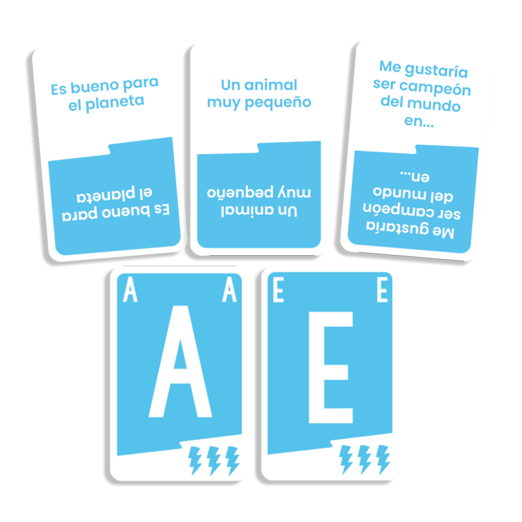 Reparte 5 cartas de letra a cada jugador/a y revela una carta de situación.