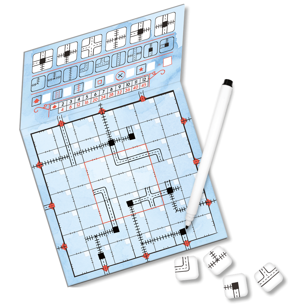 Railroad Ink es un juego de ingenio competitivo para toda la familia. Lanza los dados y dibuja Rutas en tu tablero. Crea Redes de transporte para conectar Salidas y ganar puntos al final de la partida. ¡Juega con una de las dos variantes incluidas si quieres partidas más emocionantes!
