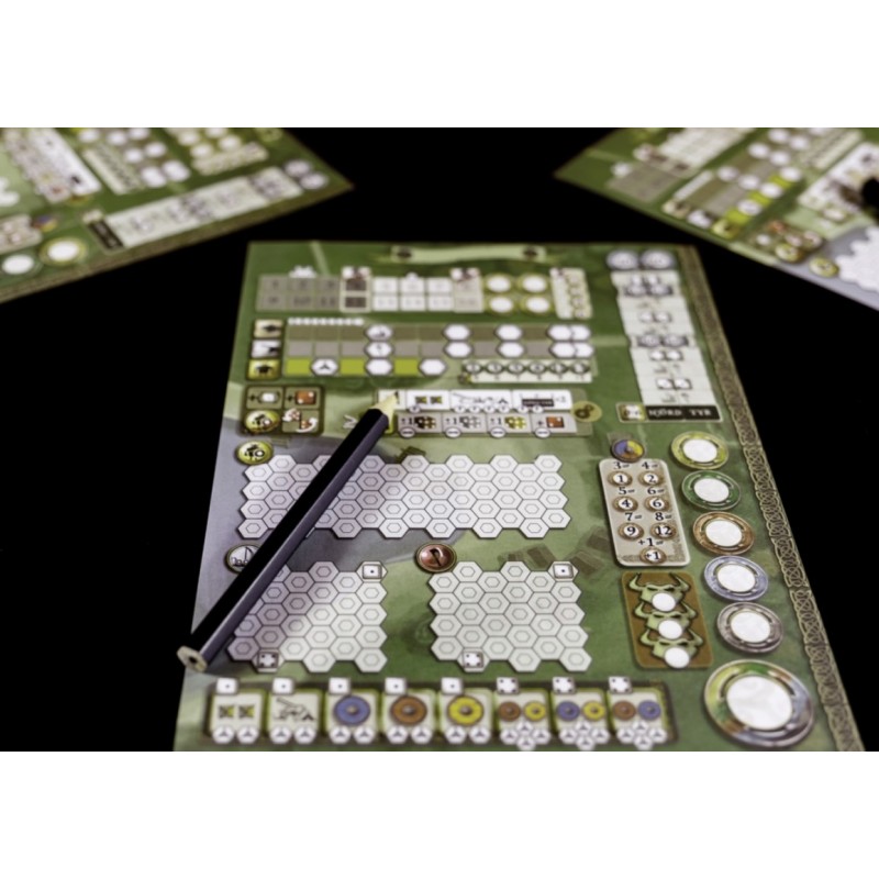 Nuestra intención es sorprender, y que mejor manera incorporando en nuestro catálogo un Roll & Write tan particular, basado en la gestión de recursos, con euro sabor, pero que además, a diferencia de la mayoría de los Eurogames, los jugadores realizarán sus acciones de manera simultánea, aportándole mucho dinamismo a la partida.