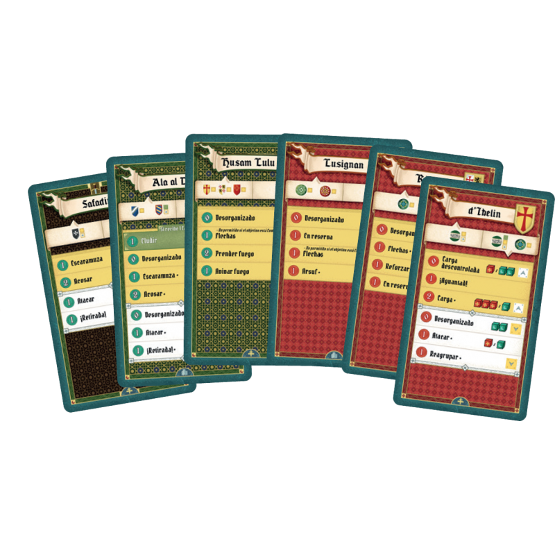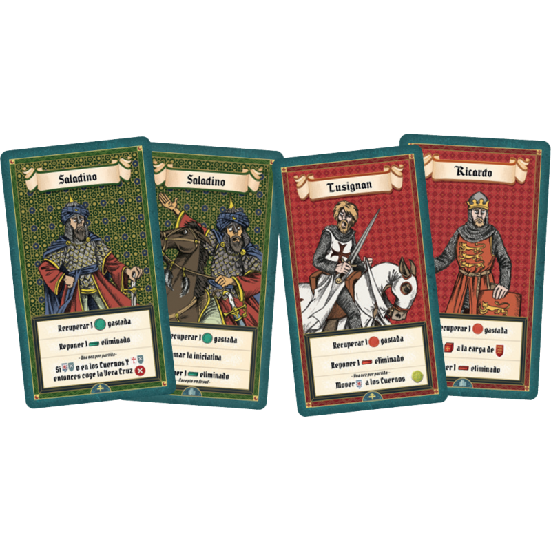 En Saladin, cada jugador lidera a uno de los ejércitos enfrentados. Ordena a tu caballería que hostigue las filas de los Cruzados o lanza una devastadora carga con tus caballeros en sus pesadas armaduras. Saladino es un juego épico diseñado para los amantes de la Historia y de la estrategia.