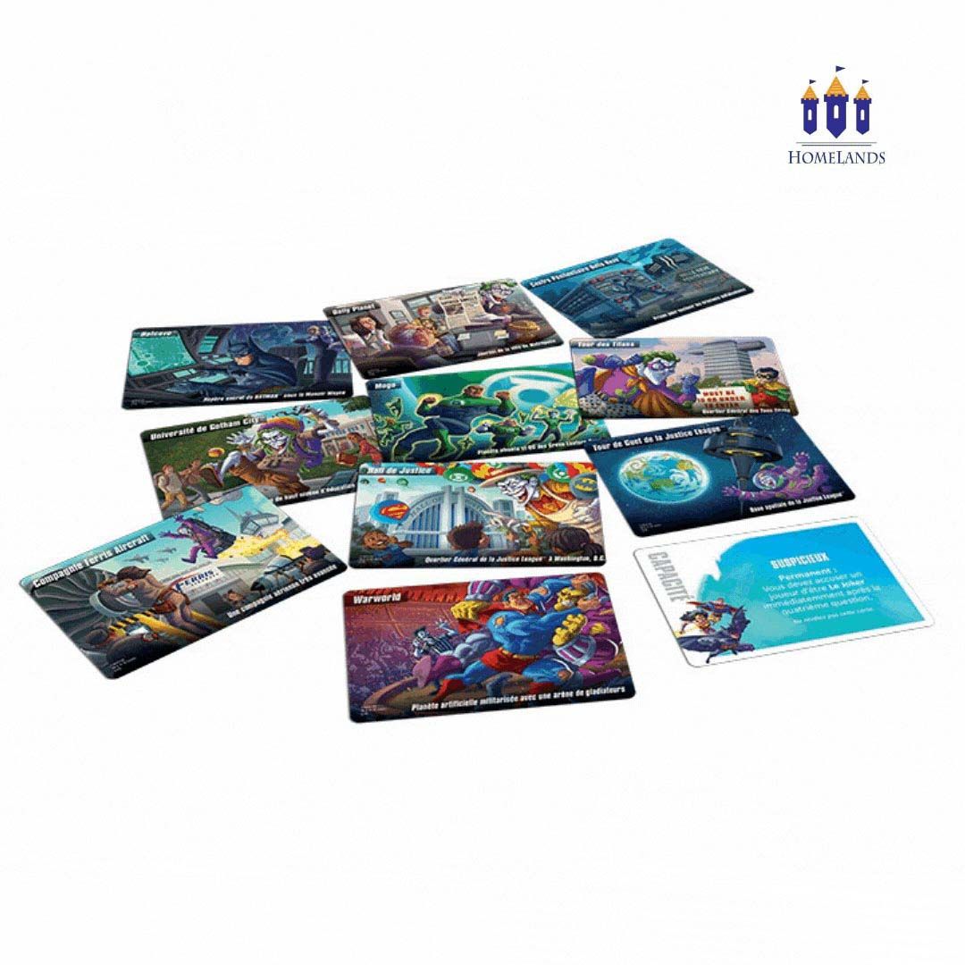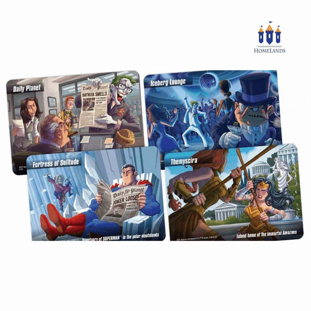 Al comienzo de cada ronda, los jugadores reciben una carta secreta que les informa de la ubicación de la Liga de la Justicia, una de las veinte ubicaciones únicas de DC, que incluyen el Asilo Arkham, el Daily Planet o el Salón de la Justicia excepto un jugador que recibe la carta de El Joker. El Joker no sabe dónde está, pero si puede averiguar su ubicación antes de que su tapadera sea descubierta, ¡gana la ronda!