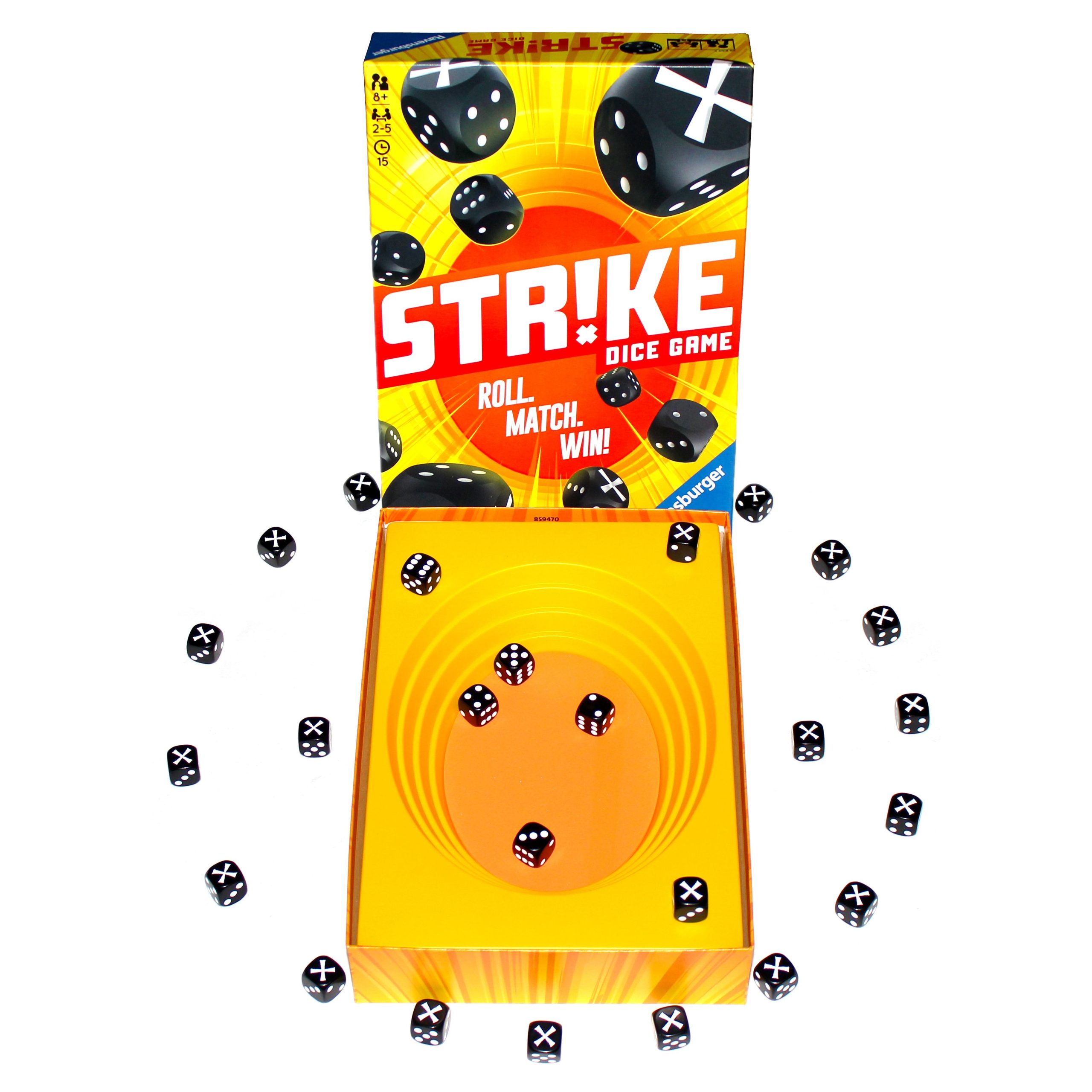 Tira tus dados al tablero, golpeando los otros dados para que cambien de cara. Coge los dados con resultados iguales. ¡El último jugador que siga teniendo dados ganará la partida!