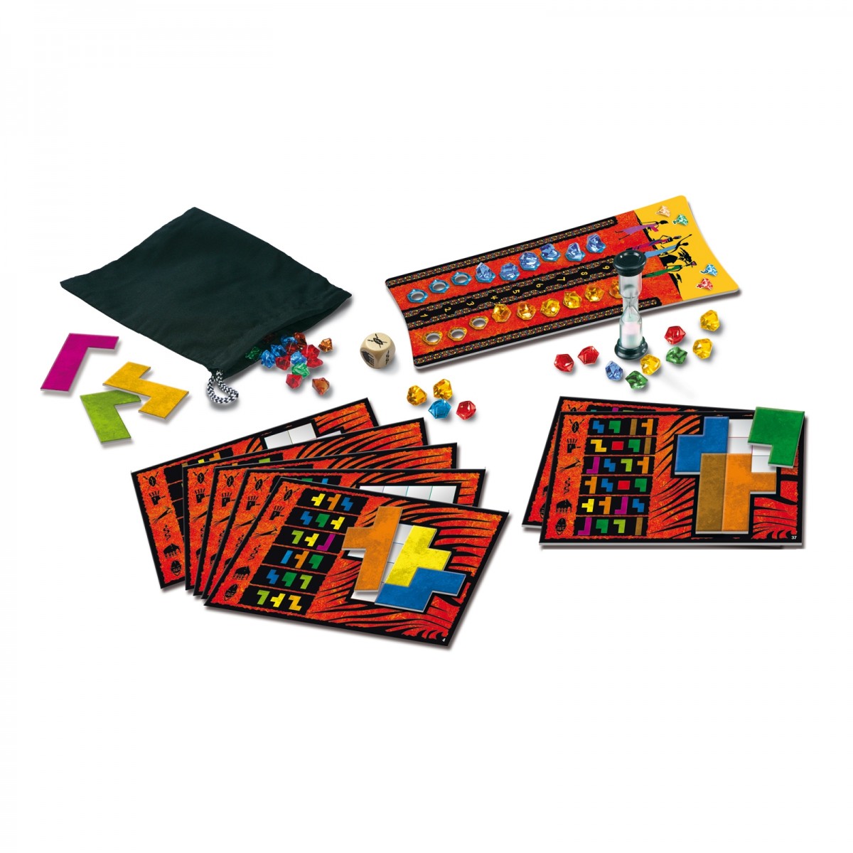 «¡Trepidante! Porque todos los jugadores intentan encajar las piezas en su plantilla simultáneamente. ¡Adictivo! Porque cuando empieces ya no podrás parar y esperarás impaciente cada nueva ronda. ¡Ingenioso! Porque las reglas de Ubongo se explican en un abrir y cerrar de ojos.» Con intrucciones en español, portugués y catalán.