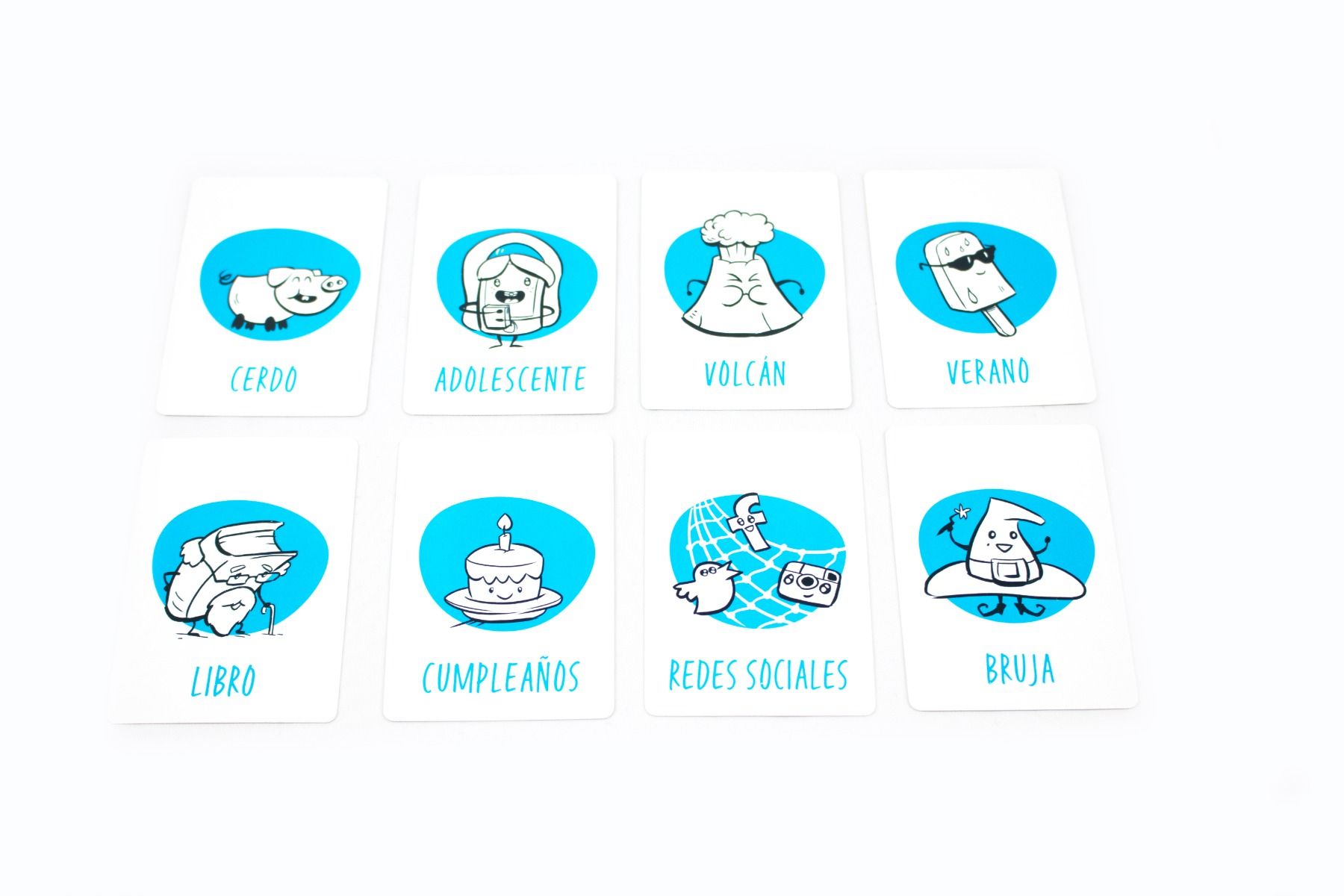 • Sacar una carta y escribir, todos al mismo tiempo, ocho palabras relacionadas con ese tema.